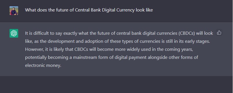 P.S: Have been trying #ChatGPT and here is its response on the future of CBDCs. As good as almost anyone has to say!!